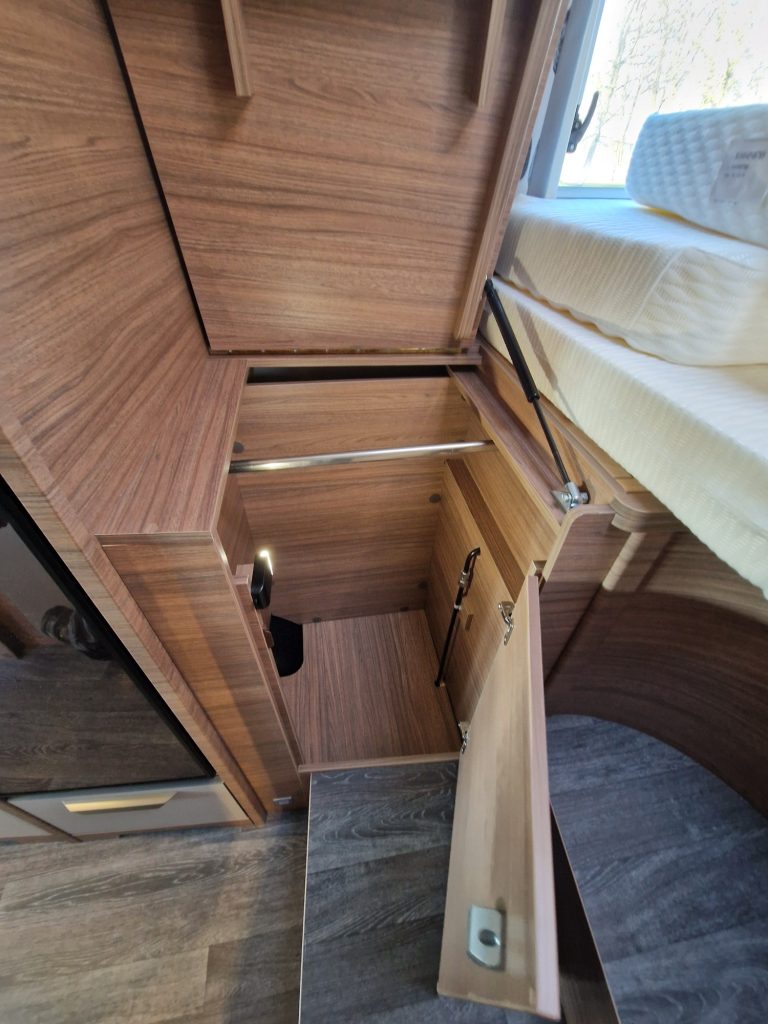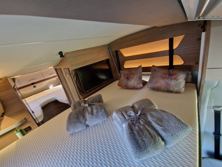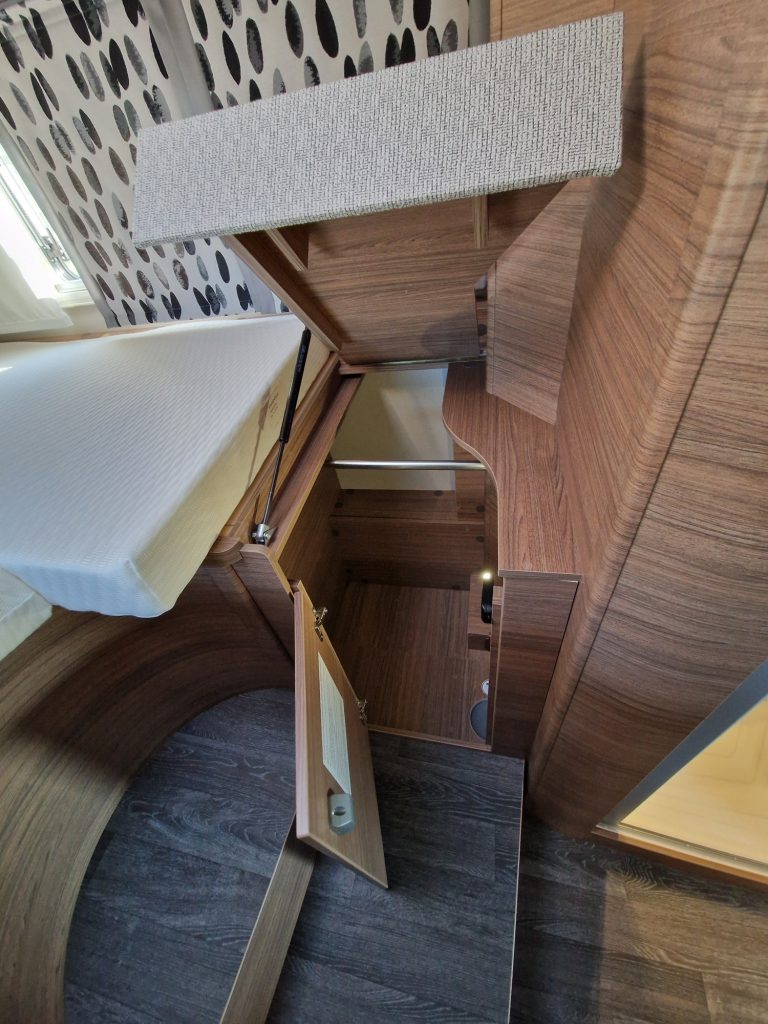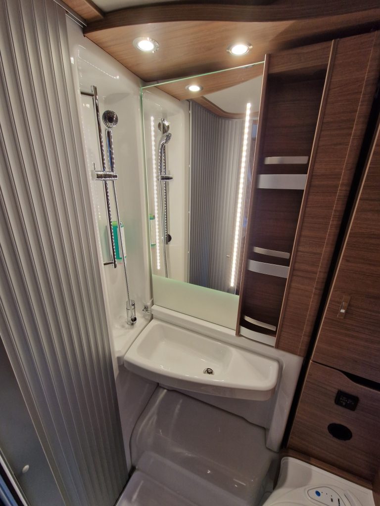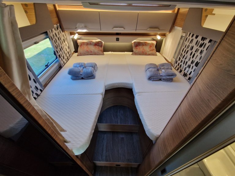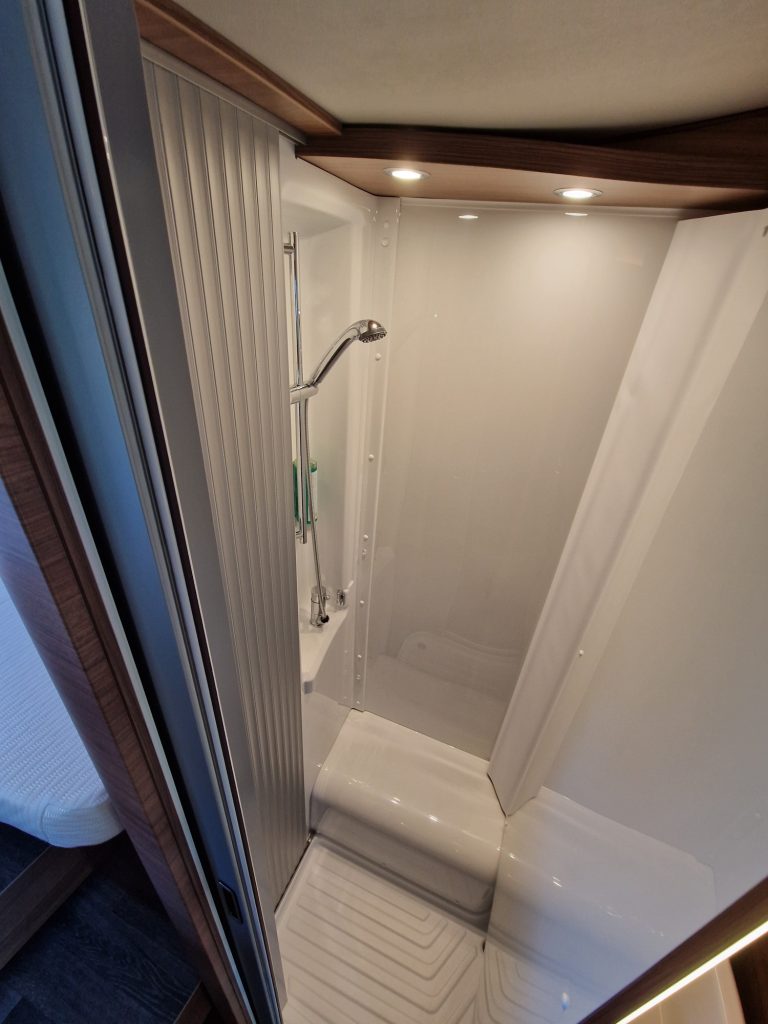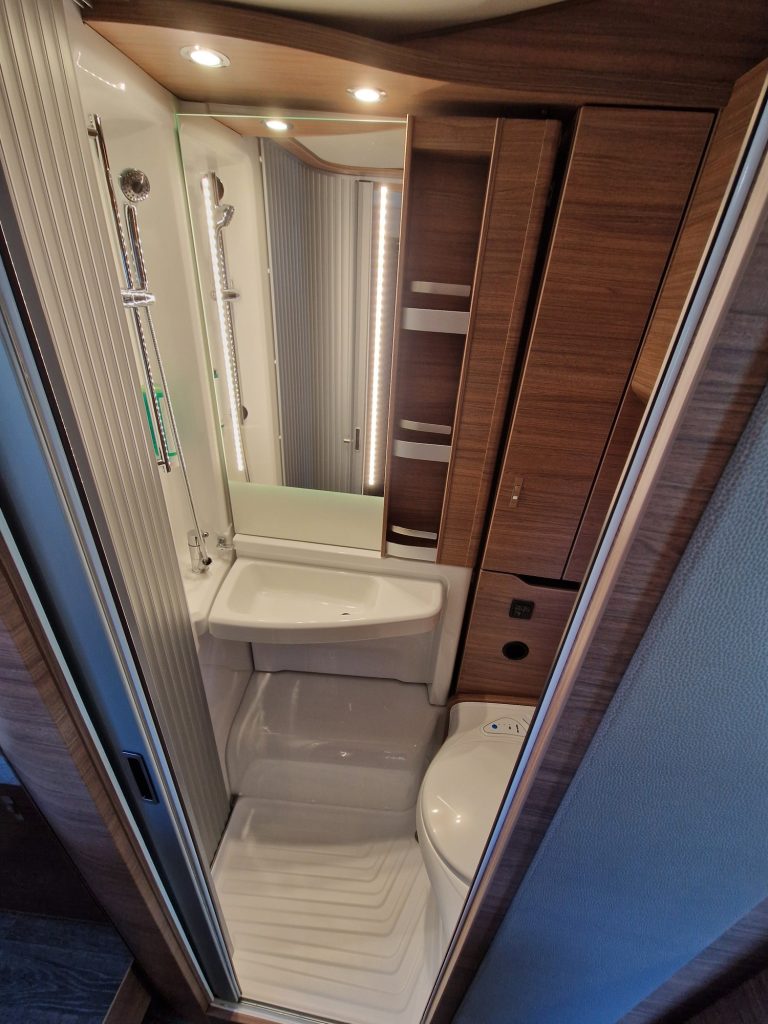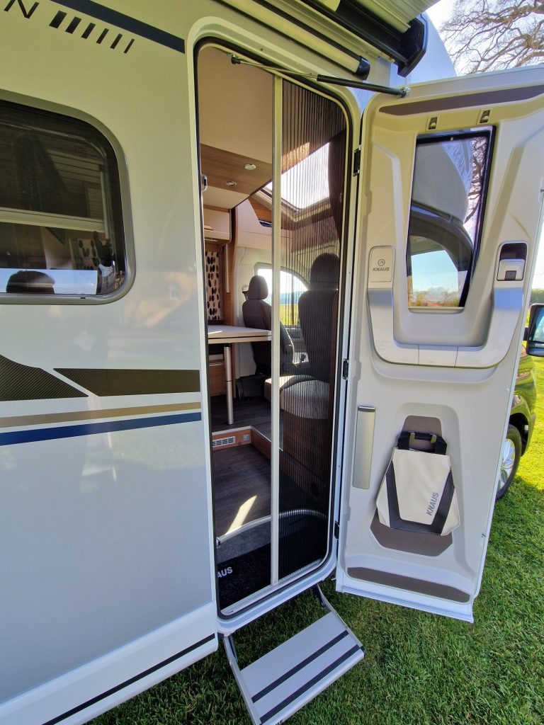 27“ Smart-TV, Externe LTE/WLAN-Antenne, elektrische Einstiegstufe, Lithium-Ionen-Bordbatterie, Kompressor-Kühlschrank 150 Liter (incl. 30 Liter Gefrierfach), Markise Thule, Premium-Aufbautür, stimmungsvolle Ambientebeleuchtung, Panoramafenster Bug uvm.